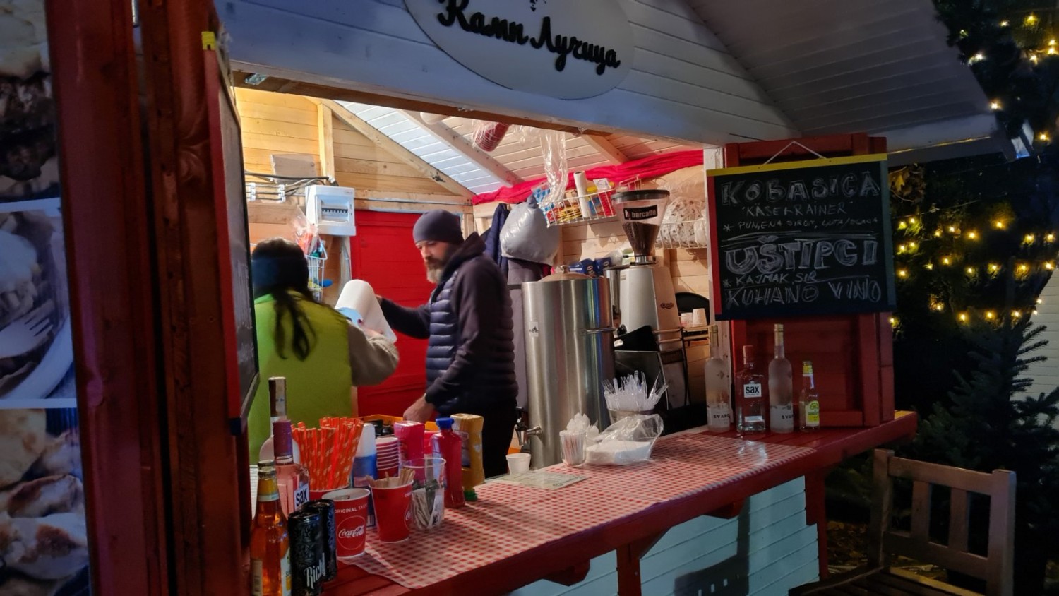 Na samom ulazu nalaze se novogodišnje kućice, koje su i ove godine posebno dekorisane, a prodavci su tu da izlože svoje proizvode.