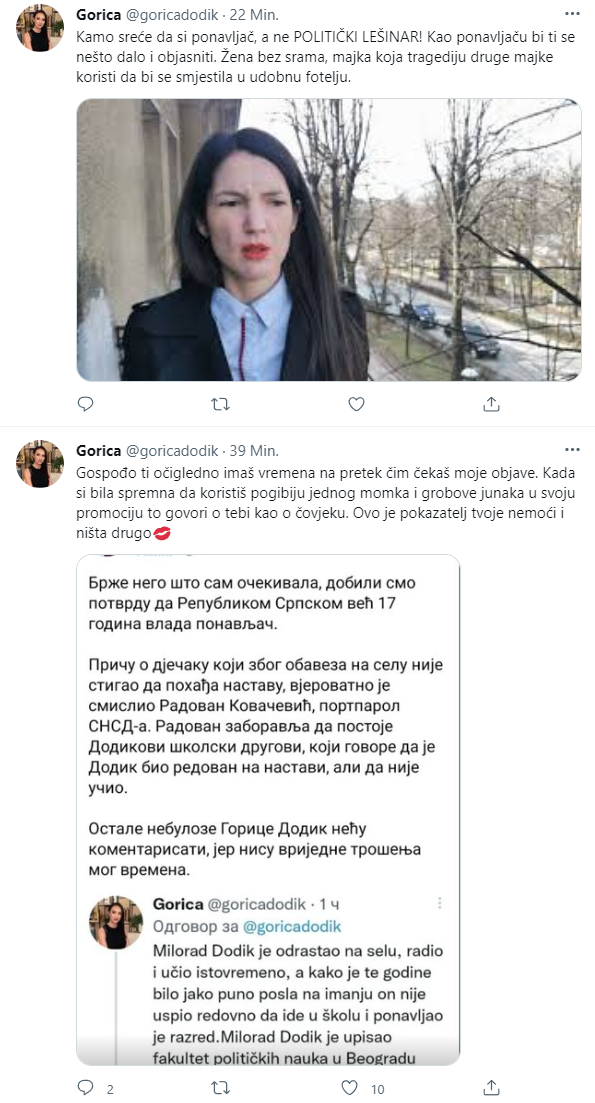Foto: Printscreen/Twitter: Gorica Dodik