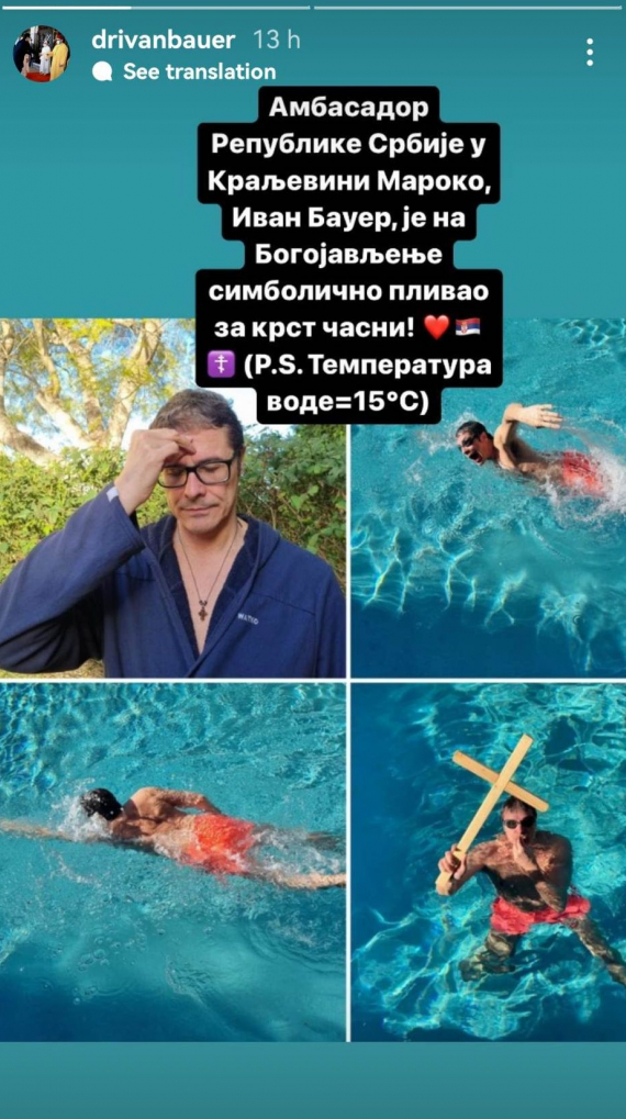 Ambasador Srbije Ivan Bauer, na Bogojavljanje je plivao za Časni krst u bazenu rezidencije